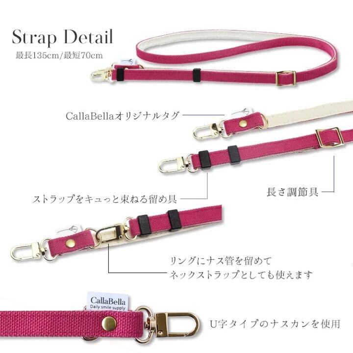 スマホやカメラ、鍵やカードケースを付けるなどあなたのアイデアで様々なシーンでお使い下さい^^