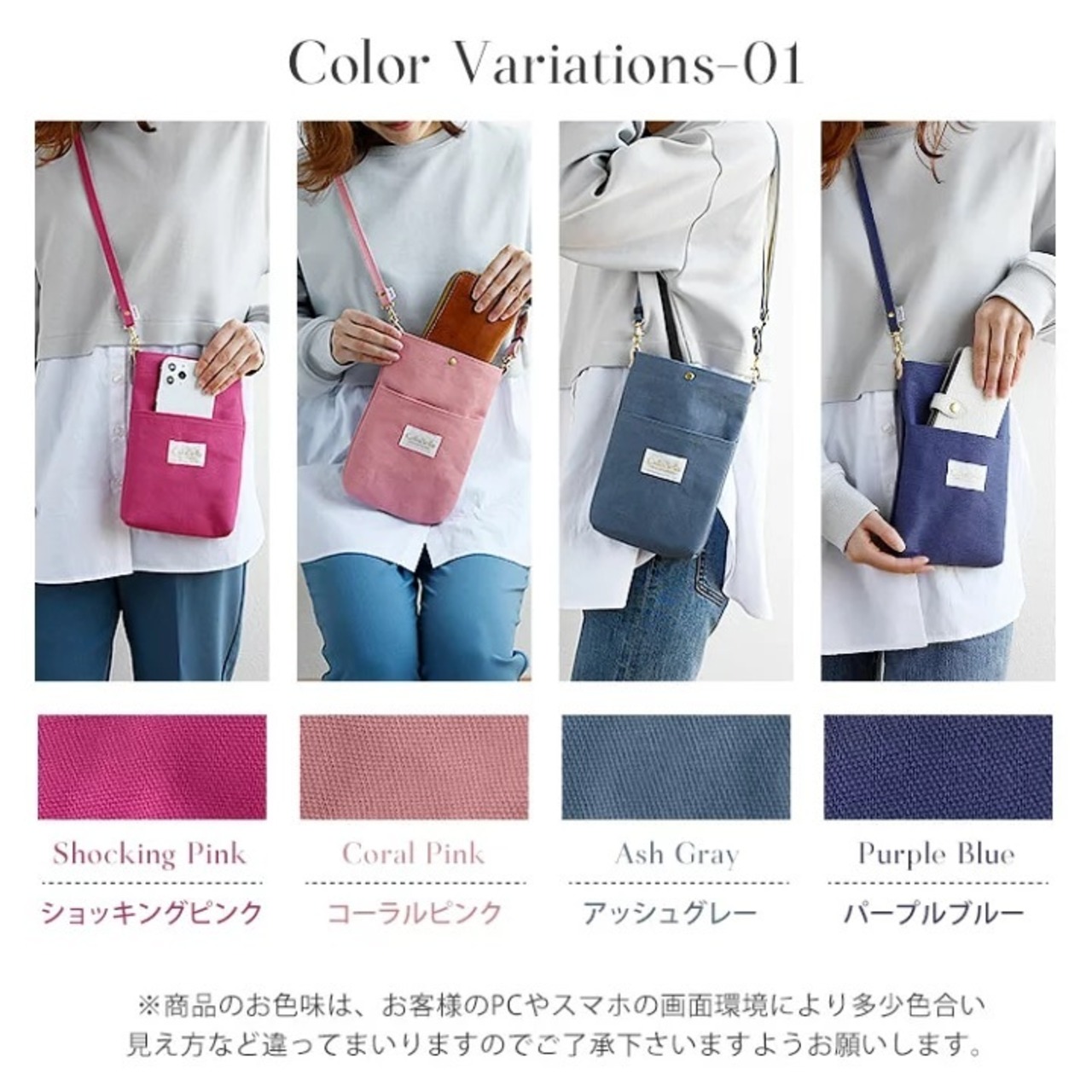 ショッキングピンク、コーラルピンク、アッシュグレー、パープルブルー、リーフグリーン、ブラウン、キナリ、ブラック
